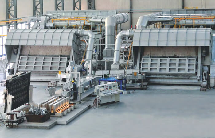 7条熔铸生产线,可年产30万吨圆铸锭,最大可生产φ457cm圆铸锭,合金品种覆盖1XXX至7XXX系列,整体配置具备国际领先水平。