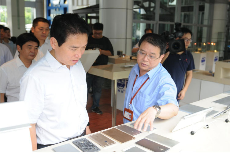 8月23日,陕西省安康市市长赵俊民率党政代表团一行35人在南平市常务副市长伍斌的陪同下到公司参观交流。图为公司副总经理吴世文向赵俊民介绍公司高端I......