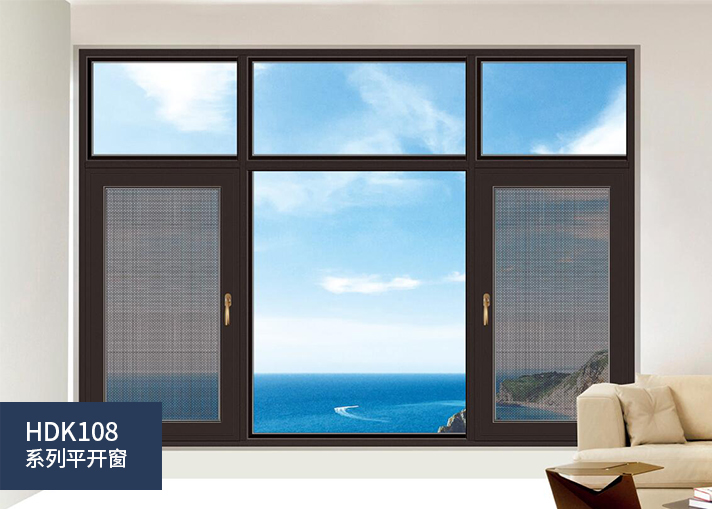 HDK108系列平开窗 隔热 纱窗一体 中置固定格栅 轻载
