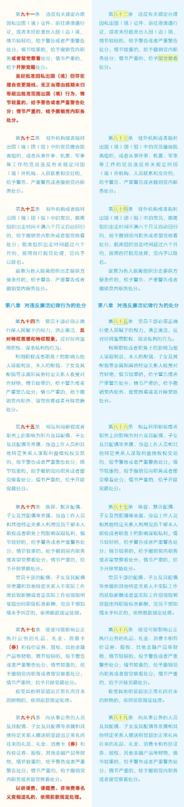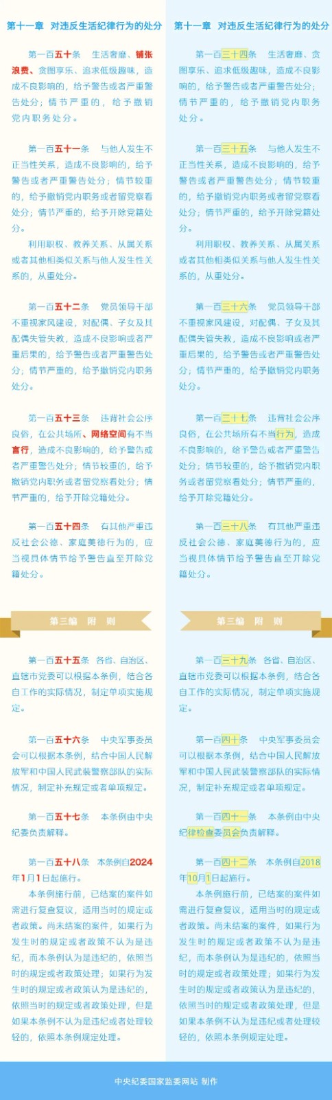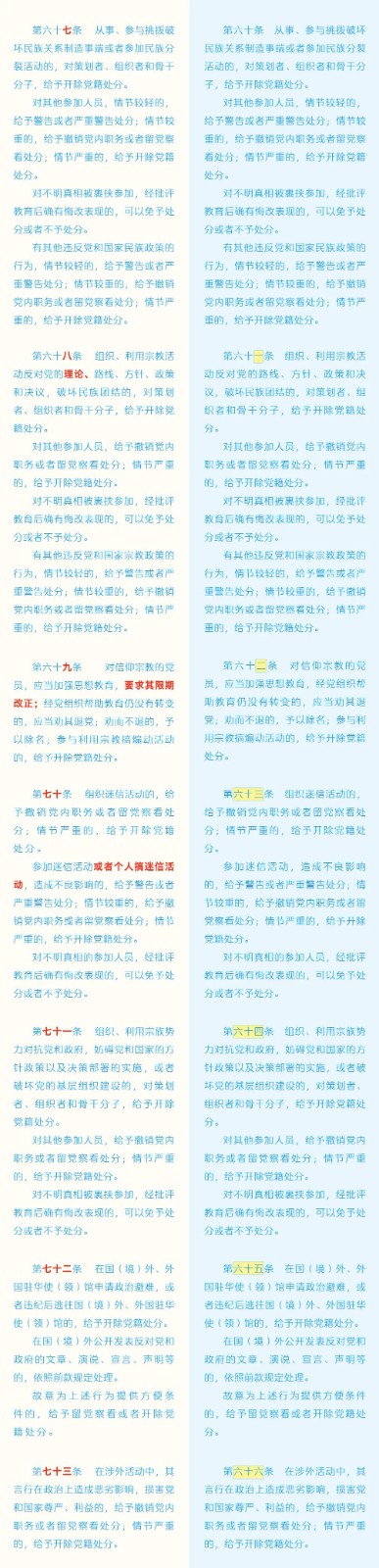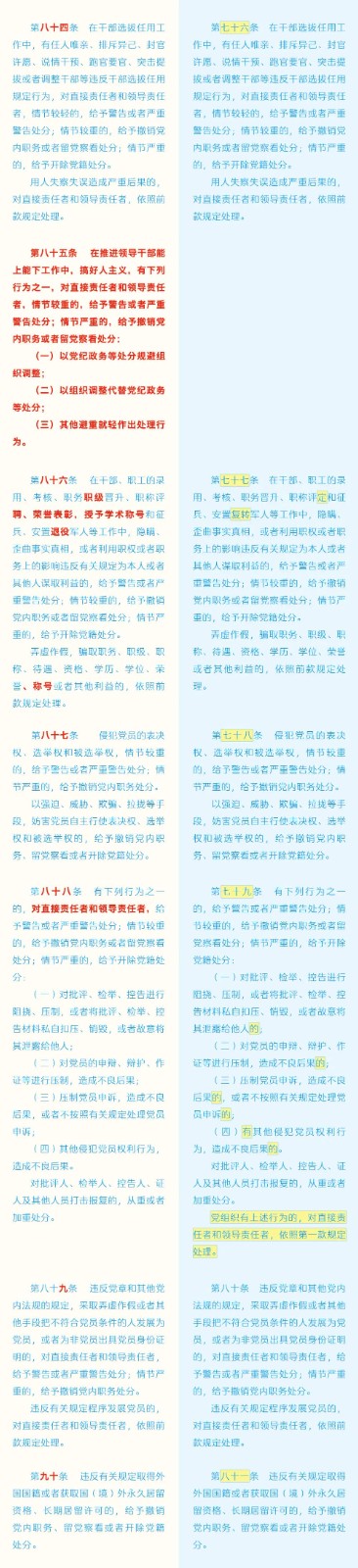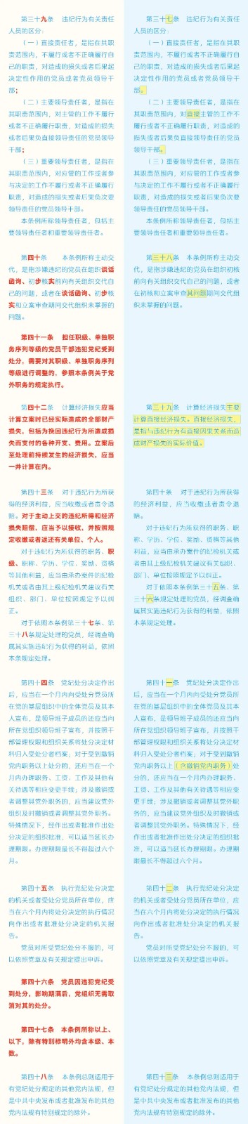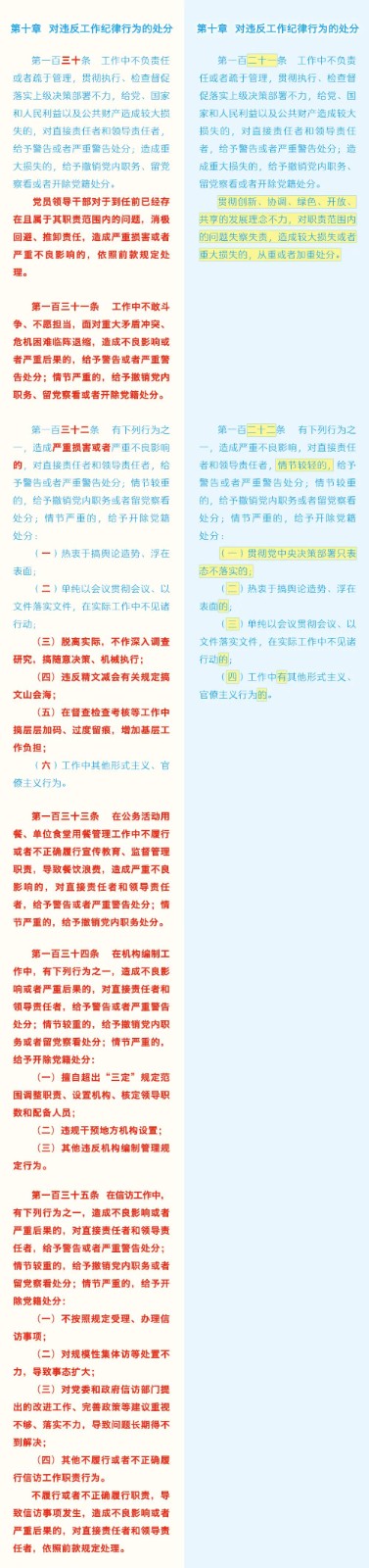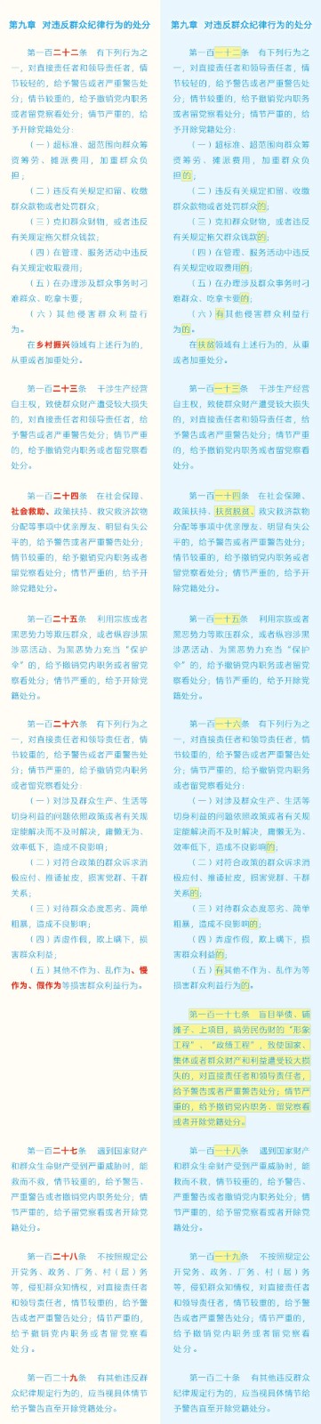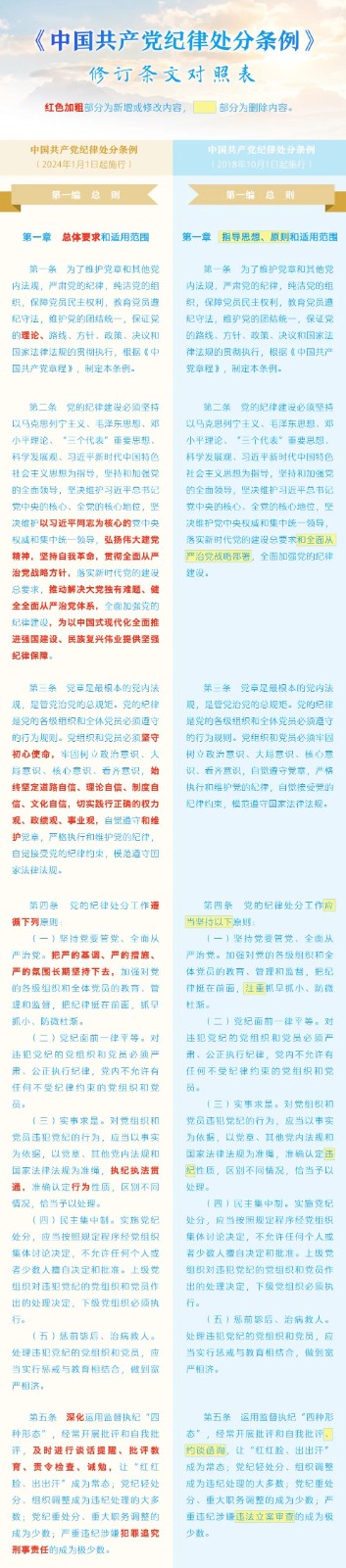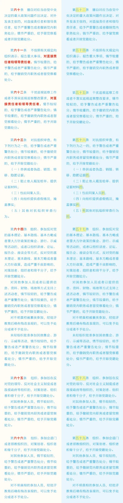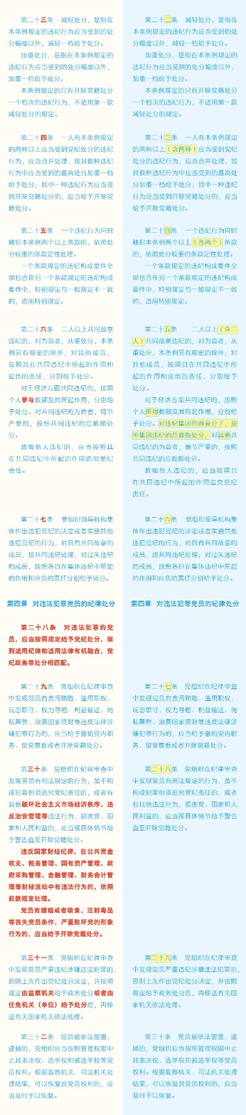《中国共产党纪律处分条例》修订条文对照表